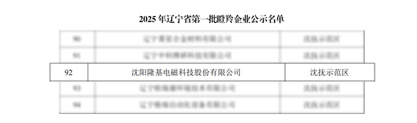 近日,辽宁省科学技术厅正式公布《2025年辽宁省第一批拟备案雏鹰瞪羚独角兽企业名单》,沈阳隆基凭借持续创新能力、高速成长态势及前瞻战略布局,成功入选“瞪羚企业”。